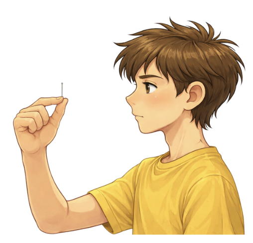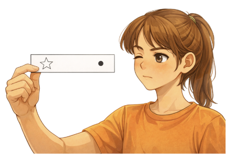 Con un alfiler u objeto fino, el alumnado acerca progresivamente el objeto hasta que deja de verlo nítido. Miden la distancia mínima de enfoque y la comparan entre compañeros.