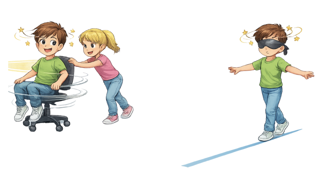 👉 Observan cómo la eliminación de la información visual dificulta la estabilidad.