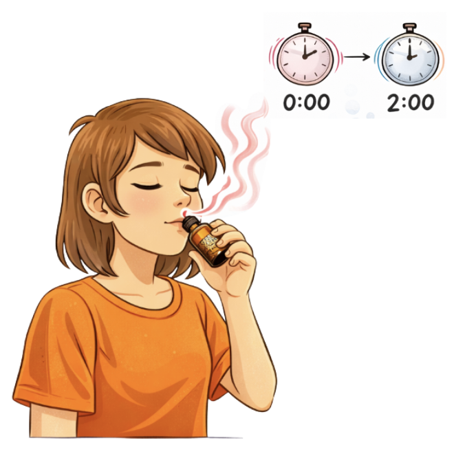 Oler aceites esenciales mientras se cronometra cuánto tiempo tarda en disminuir la intensidad percibida.