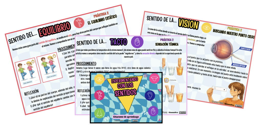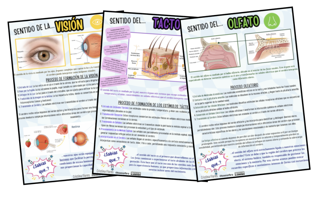 - Láminas explicativas de cada sentido con curiosidades científicas.